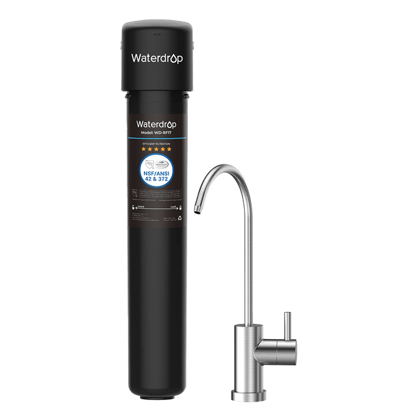 Waterdrop under sink filter with dedicated faucet uses innovative five-stage filtration to effectively reduces chlorine, heavy metals like mercury, and other chemical contaminants.