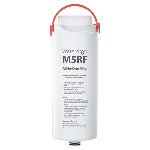 - Waterdrop M5 countertop RO system provides stable filtration performance with one year-long service life and up to 550 gallons of water. Easy to switch a new filter in 3 second.