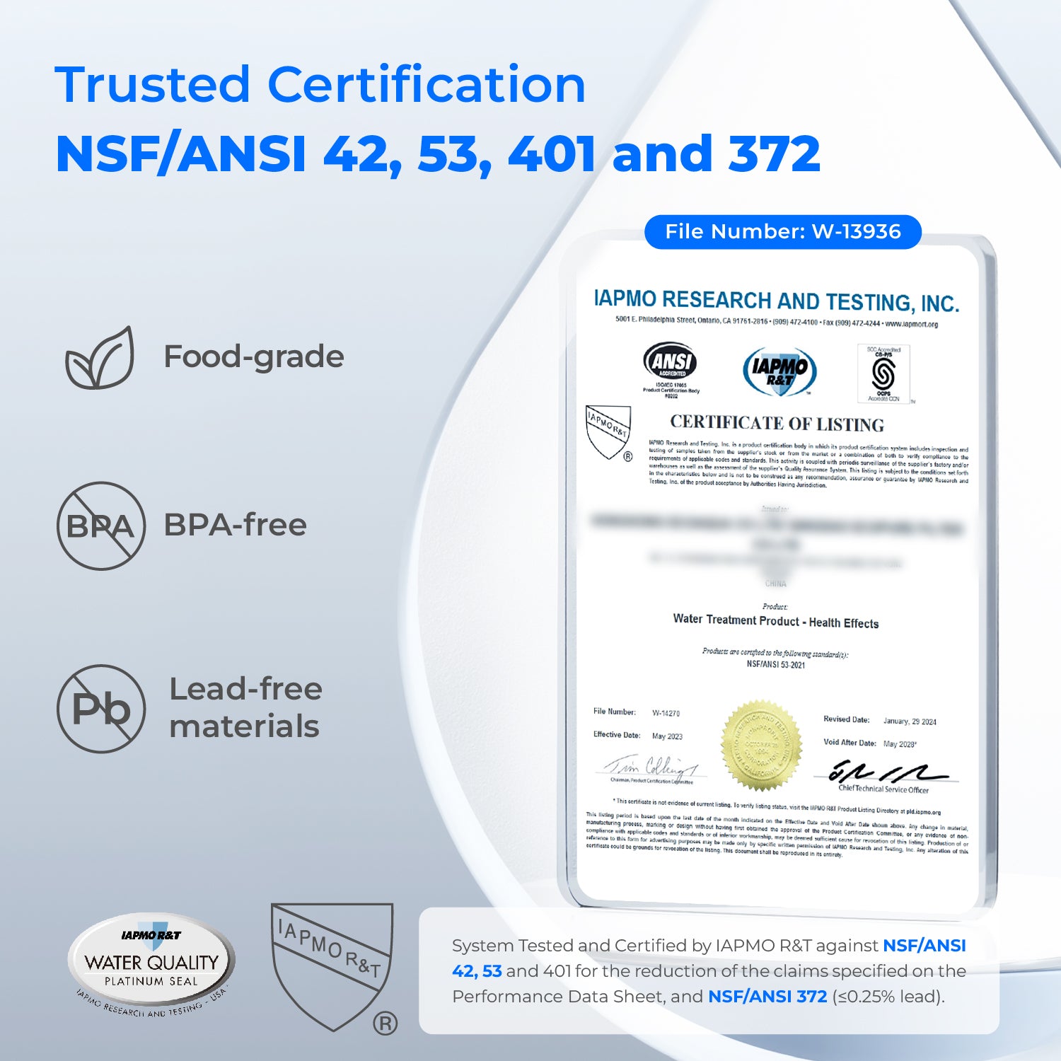 | NSF/ANSI certification | NSF/ANSI 401&53&42&372 | NSF/ANSI 401&53&42&372 | NSF/ANSI 401&53&42&372 |