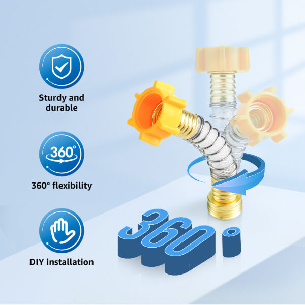 - [Flexible Hose, Zero Leakage] The hose water filter Equipped with a 360° rotatable hose, flexible and durable, it is free from breakage. Besides, comes with an anti-kink flexible hose protector to help prevent hose kinks and tension for smooth water flow.
