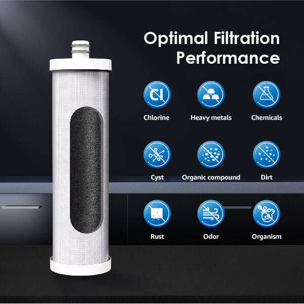 - The 0.5-micron coconut shell-made activated carbon filter reduces a wide range of impurities in your water.