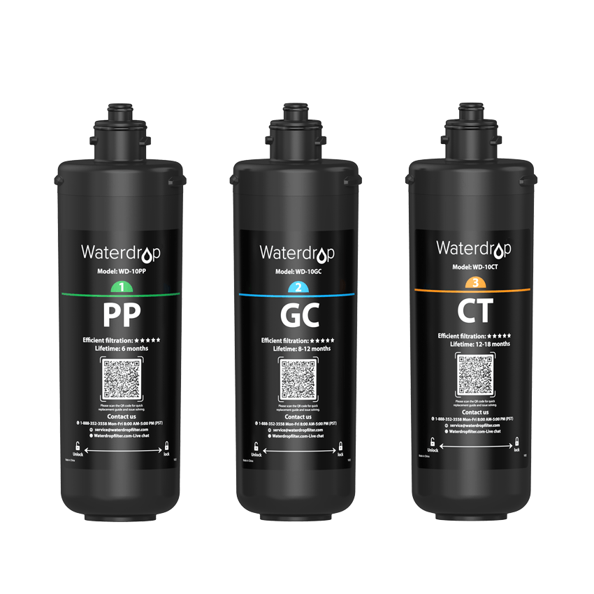 - [Extended service life]: The 3 filters have a lifespan of 6 months, 8-12 months, and 12-18 months, respectively. The actual result varies according to the local water quality. To get the best filtration experience, please replace the filter based on recommended filter service life.
