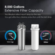- [Made to last for long] The under cabinet water filter provides up to 8,000 gallons of high-quality filtered water or 12-24 months of performance, which depends on local water quality. You only need to replace internal filter while keeping the system housing.