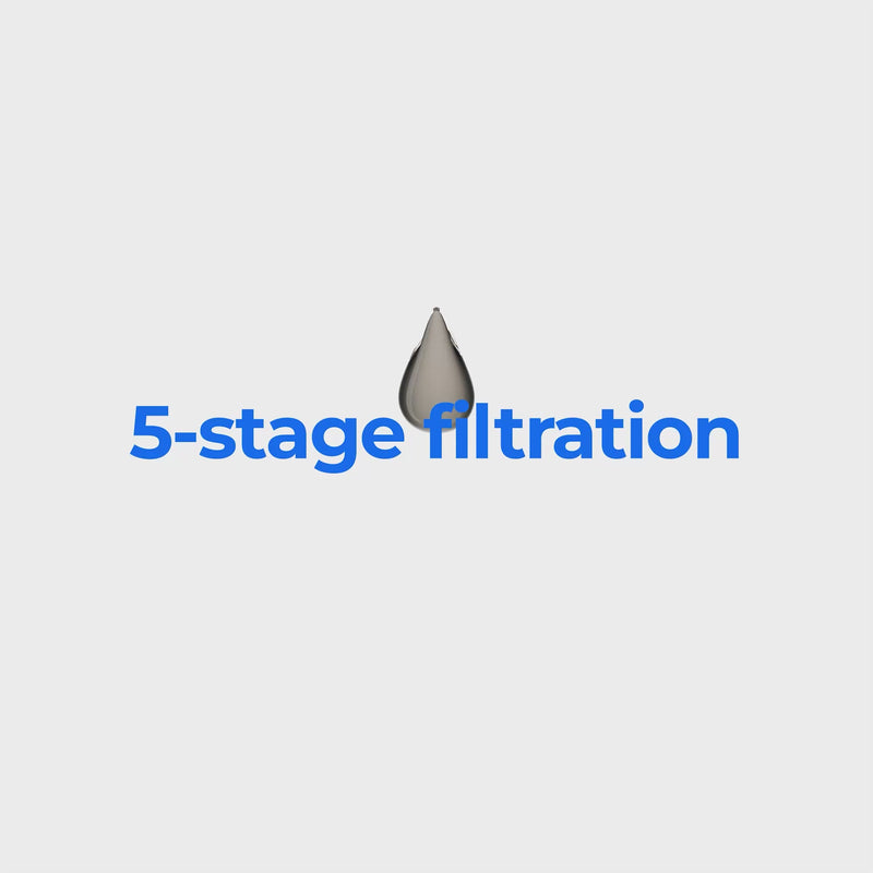 This countertop RO water filter has a 5-stage filtration including a 0.0001μm RO membrane & LED function. Effectively reduce TDS, PFOA, PFOS, Chlorine, Fluoride, Lead, Sediment, Salt and large particles from your tap water, delivering fresh, clean drinking water. NOTE: This data is from a third-party lab.